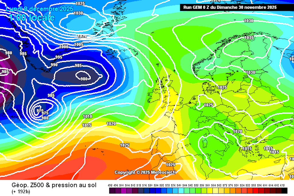 Douceur exceptionnelle en flux de sud d’origine subtropicale Une profonde dépression s’est positionnée sur le proche Atlantique, au nord-est de l’archipel des Açores, et devrait y rester plus ou moins stationnaire jusqu’au prochain weekend. Ce vaste système dépressionnaire, qui inclus également un minimum de basses pressions situé sur la Norvège, entraîne, en direction de l’Europe… Lire la suite : Bulletin du 12 novembre 2025