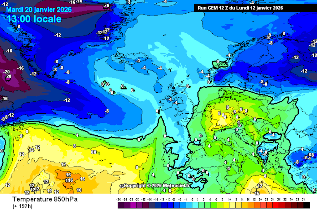 Dans l’état actuel des modélisations, une grande douceur pour la saison se maintiendrait durablement dans notre région. D’abord faiblement humide, elle pourrait s’assécher dans notre région en fin d’échéance, lorsque le courant perturbé (et le courant Jet) plongerait en direction de l’Afrique du nord. En effet, le courant perturbé ne semble pas pouvoir pénétrer franchement sur l’Europe occidentale, en l’état actuel des choses et à l’échéance d’une dizaine de jours.