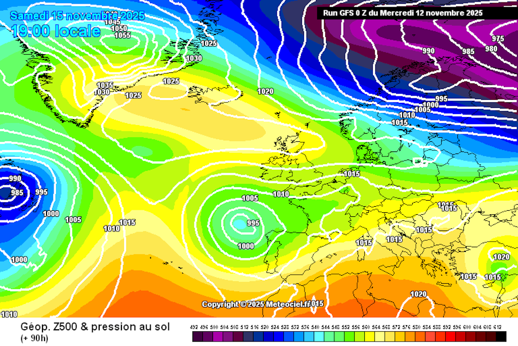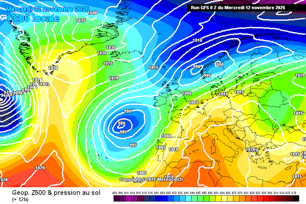 - Bulletin du 12 novembre 2025Douceur exceptionnelle en flux de sud d’origine subtropicale Une profonde dépression s’est positionnée sur le proche Atlantique, au nord-est de l’archipel des Açores, et devrait y rester plus ou moins stationnaire jusqu’au prochain weekend. Ce vaste système dépressionnaire, qui inclus également un minimum de basses pressions situé sur la Norvège, entraîne, en direction de l’Europe… Lire la suite : Bulletin du 12 novembre 2025