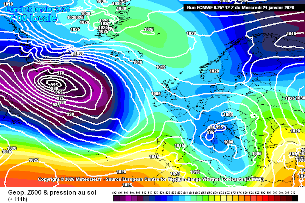 Sur l’illustration ci-dessus, nous pouvons également observer la forte activité dépressionnaire en sortie du continent nord américain, qui recouvre une grande partie de l’océan Atlantique nord et qui, selon toutes vraisemblances, devrait nous influencer pour le reste de la semaine prochaine. Il est pour l’heure impossible d’en établir les détails, mais des conditions potentiellement humides dans une masse d’air relativement fraîche (mais peut-être temporairement plus douce) pourrait redonner au Massif quelques teintes hivernales, en particulier sur ses crêtes. A notre niveau, il est prématuré d’essayer d’établir la nature des éventuelles précipitations. Il semble en revanche plus que vraisemblable que nous devrions échapper tant à la vague de froid qu’à celle de la douceur d’origine subtropicale, les températures semblant ne pas trop s’éloigner des normales saisonnières. A confirmer donc ces prochains jours…