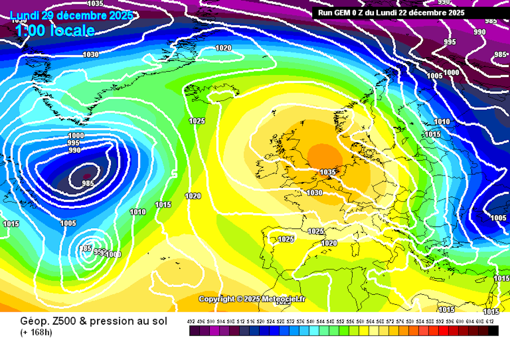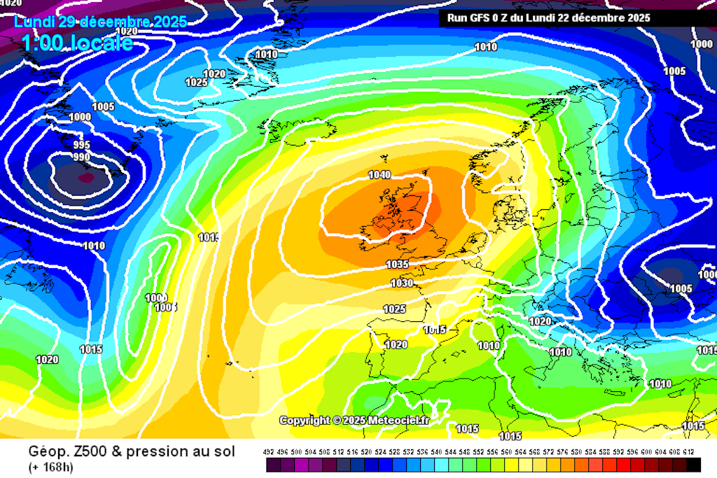 Cela s’apparente de plus en plus à un « magnifique » Omega, dont l’épicentre se situerait au voisinage de l’Irlande. Dans notre pays, nous nous trouverions situés sur son flanc est, mais vraisemblablement à l’écart des décrochages arctiques qui, pour l’heure, sembleraient prendre pour cible l’Europe orientale.