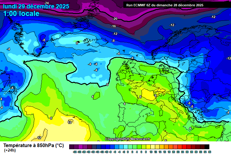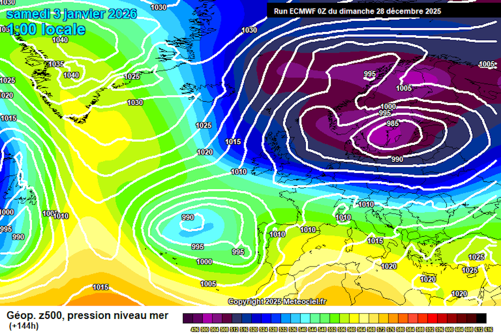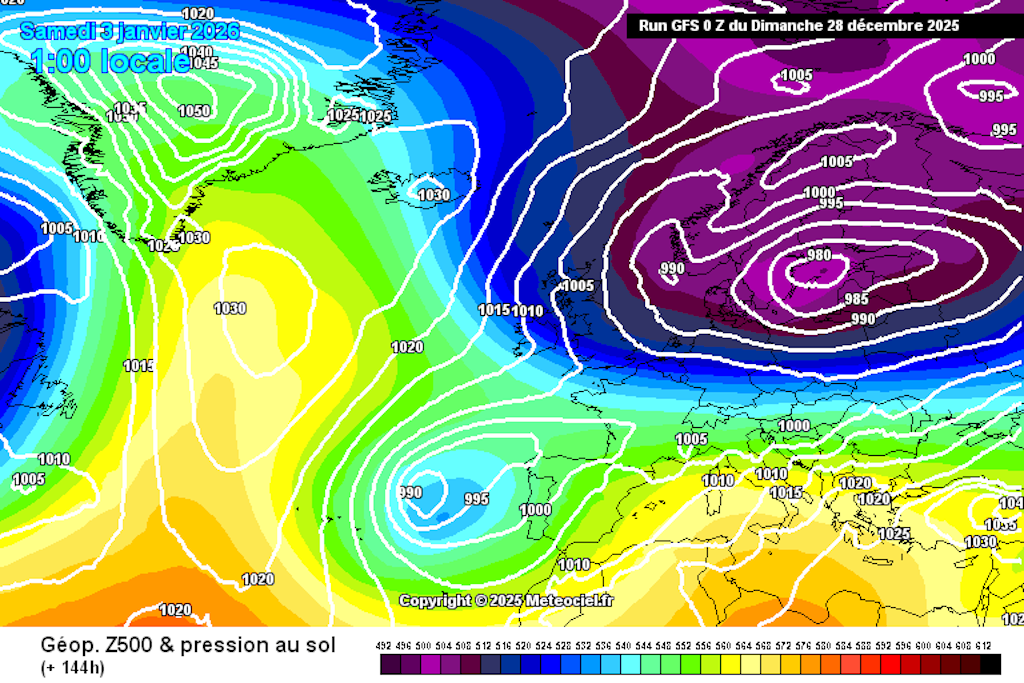 Nous devrions en principe conserver ces conditions anticycloniques encore quelques jours, vraisemblablement jusqu’en début d’année prochaine. Cependant, la marge d’un décrochage arctique sur l’Europe centrale et orientale devrait entraîner ici une baisse sensible des températures en montagne.