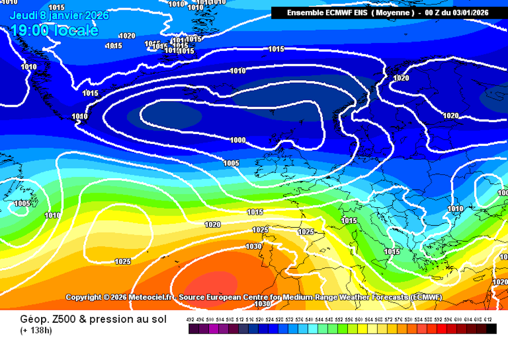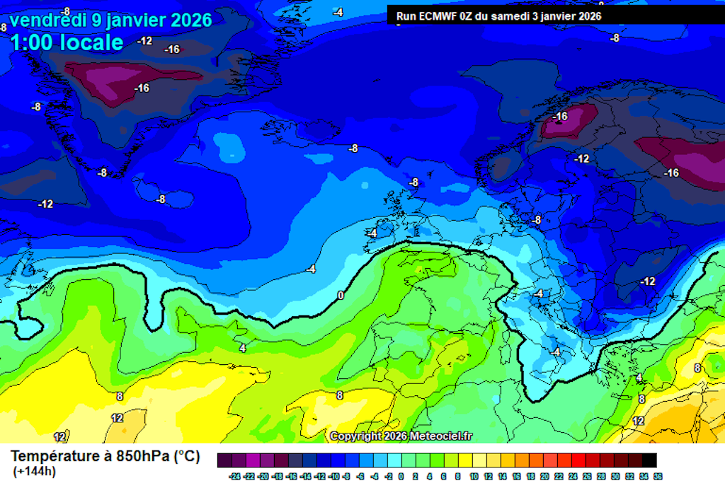 Attention, je rappelle qu’il ne s’agit que du scénario du modèle européen et de sa réactualisation de ce matin. Les autres modèles diffèrent encore sur la localisation, la chronologie et l’importance de cette interaction, ce qui aurait bien évidemment une incidence non négligeable sur le temps sensible ici. Pour exemple, rappelons-nous la neige dans notre Massif juste avant Noël 2024, en bordure d’une puissante zone de subsidence associée à de l’air d’origine subtropicale, mais du bon côté pour une fois, celui situé dans la trajectoire du courant cyclonique et son air polaire maritime.